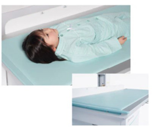 天板表面にはソフトマットを備えています。寝台に横たわる際にゴツゴツせず,ひんやりしにくいやさしい体感を実現します。