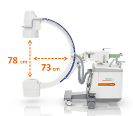 Cios Fitの奥行(内径)は73cmあるため,手術台と干渉するリスクを減らすことができるほか,手術中の様々な患者ポジションに柔軟に対応することが可能です。