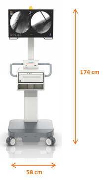 Cios Fitのモニターカートは従来製品(Cios Select)と比較して,53%軽量化しました。重量は70Kgで動かしやすい設計なので,片手で簡単に移動することができ,手術室内や手術室間との移動の負担を軽減します。