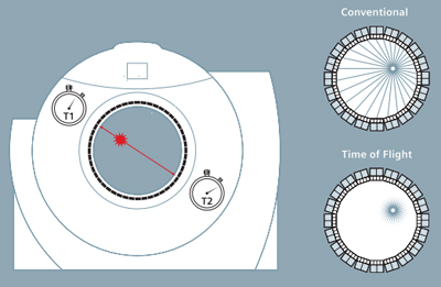 TOF(Time of Flight)技術は,患者の体格に左右されることなく小さな病変を正確にとらえ,読影しやすい安定したPET画像を提供します。