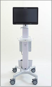 モニタに全面タッチパネルを採用しており,操作パネルがないためスリムなデザインを実現している。da Vinciは比較的大きく,手術室を効果的に利用するためには,使用頻度の少ない超音波診断装置はコンパクトで移動性の良好なものが好まれる(図1)。