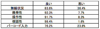 全病棟導入から2か月後に行った利用者アンケート(対象は看護師421名,回収率88.6%)より,携帯性,操作性,視認性の項目で高い評価を得た(表2)。
