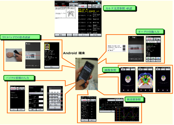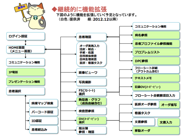 2012年11月の時点で,看護業務と画像表示,検査歴表示,写真撮影(編集を含む),文書参照・承認,の機能を運用している(図2,3)。
