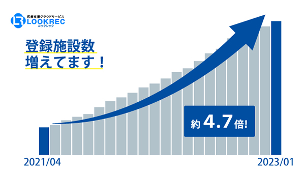 サービス提供開始以降,導入施設数拡大中! 特にコロナ禍以降,クラウドの必要性に直面され今後を見据えて導入される施設が増えています。LOOKREC内の保管検査画像数も220万人分を突破し,今後もますます拡大が見込まれています。