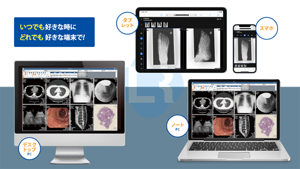端末も自由自在:いつでも好きな時に,好きな端末で画像のチェックが可能です。レスポンスや表示の速さについては特に力を入れており,3D表示も瞬時に可能で,クラウドでもストレスを感じずに読影業務が行えます。