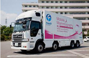日本唯一のCT・MRI装置を車載化しレンタルサービスを手掛ける(株)フリールは,世界初となる「3Dデジタルマンモグラフィー装置搭載車」を開発した。