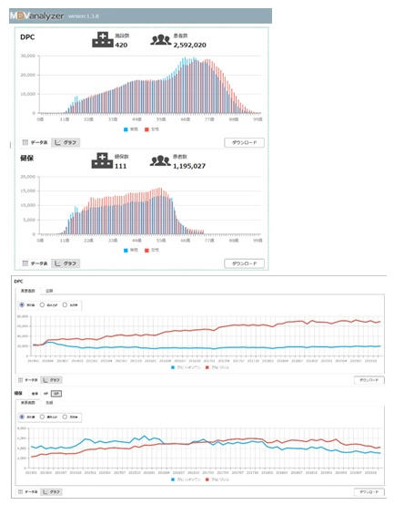 そこで,同社の「MDV analyzer」に健保データを組み込み分析機能を搭載することで,DPCと健保,それぞれのデータを一つの画面で同時に閲覧できるようになった。これにより,結果の違いの有無などが瞬時に確認できるほか,作業効率改善や分析精度を向上させることが期待できる。