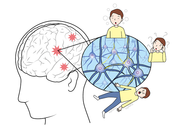 私たちの脳は,神経細胞が集まって構成されている。神経細胞は,通常『興奮』と『抑制』がバランスよく働き,私たちの体をコントロールしている。しかしてんかんの場合このバランスが崩れ,ある神経細胞が異常に興奮し,過剰な電気を放つ。その場所を『てんかん焦点』と呼ぶ。