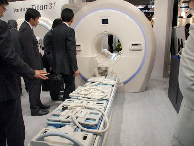 MRIでは,MRIプラットフォームであるM-Powerの機能を強化した1.5Tの「Vantage Titan」を発表した。「迷わない」「探さない」「失敗しない」をコンセプトにしており,心臓MRIをアシストする位置決め機能「CadioLine」を世界で初めて搭載する。CTは3機種を展示。最新被ばく低減技術「AIDR 3D」を採用している。被ばく低減についてはアンギオ装置にも新たに「スポット透視機能」が搭載される。超音波診断装置では,「Smart Fusion」機能を搭載した「Aplio 500」を展示。このほか,アマゾン ウェブ サービスを利用したクラウド型医用画像外部保管サービス「Healthcare@Cloud」もPRしていた。