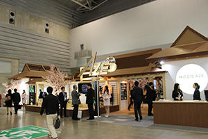 AZEは,ユーザーへの感謝の気持ちを込めて,「おもてなし」をコンセプトに日本の迎賓館でもある離宮をイメージしたブースで来場者を迎えた。葉桜の季節の開催となるITEMでも海外からの来場者にも和の心を感じて楽しんでほしいと,東屋に見立てた展示スペースの各所に桜を飾り立て,落ち着いた空間に華やかさを演出。茶室をイメージしたメインステージでは,ブラッシュアップしたボリュームレジストレーションビューア「AZE Phoenix」や,3Dワークステーション「AZE VirtualPlace」に搭載される先進的な各種ソフトウェアをアピールした。