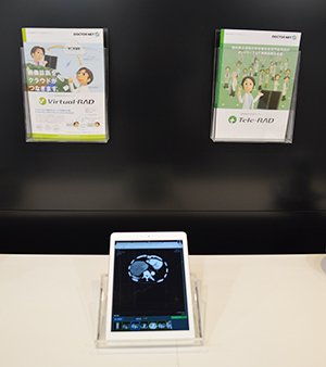 新しいロゴマークは,「医療の質」「人」「社会」の3軸の企業理念を基に,“人が中心:「人」”“心が届くコミュニケーション:「ハート」”をデザインしている。今回のITEM2014では,次の時代を見据え,真のクラウドを利用した遠隔読影診断の方向性を提案。ドクターネット画像センター「FOCUS」や遠隔画像診断支援サービス「Tele-RAD」,クラウド型遠隔読影ASPサービス「Virtual-RAD」,汎用画像診断システム「ドクターPACS for」などを紹介していた。(4月12日取材)
