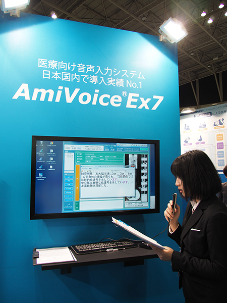アドバンスト・メディアは,医療向けの音声入力システムとして,スタンドアローンタイプからサーバクラインアントタイプまでニーズに応じた形での利用が可能な「AmiVoice Ex7」,医療・介護に対応するクラウド型サービスの「AmiVoice CLx」,スマートフォン向けの「AmiVoice MLx」などのほか,多様なニーズに応えるインプットデバイスを豊富にラインアップした。