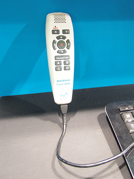 このほか,インプットデバイスとしては,同社オリジナルの製品として,抗菌仕様かつ軽量化の図られた専用ハンドマイク「AmiVoice Front SP01」などが紹介され,体験コーナーで実際に音声入力体験ができるようになっていた。