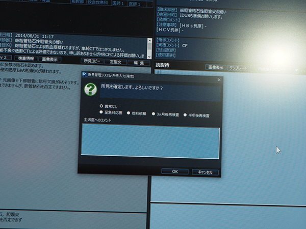 読影の確定時に注意喚起コメントのダイアログボックスが必ず起動するように改良