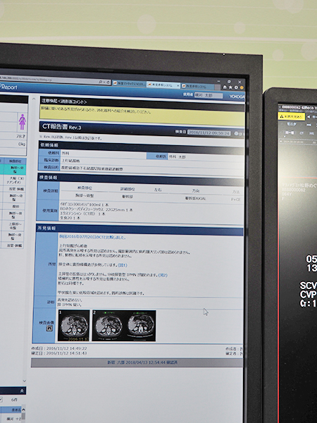 臨床医のレポート参照画面では注意喚起のコメント欄の背景に色づけ