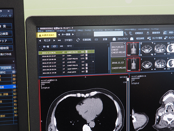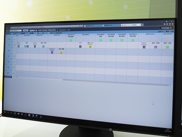 また,検査の一覧を時系列でマトリクス表示するSCOPEでも,未読検査や注意喚起ありのレポートは“!”アイコンや赤での表示などで注意を促すようにした。同社では,部門システム側で医療安全の仕組みを用意して電子カルテシステムとも連携できるようにすることで,病院側でのトータルな医療安全のシステム構築をサポートできることをアピールした。