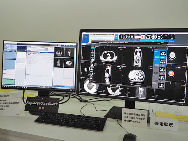 HITコーナーでは,医療情報統合ビューア「Abierto Cockpit」や画像ソリューション「RapideyeCore Grande」を中心に,Collaborative imagingコーナーでも紹介された開発中のサーバやビューワ,ワークリストなどのAI技術を含めた新しい画像診断ワークフローを紹介したほか,2019年2月に発売された線量管理ワークステーション「DoseXross」や医用画像処理ワークステーションの「Vitrea」の新機能を中心に紹介した。