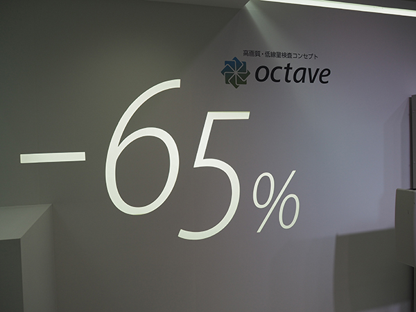 高画質・低線量コンセプトである“octave”で最大で65%の線量低減が可能になることを展示でも強調