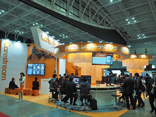 ケアストリームヘルスは,「Whatever You’re Facing, Let’s Talk it Through」をテーマに展示した。ブースでは,画像診断システムの統合プラットフォームである“Clinical Collaboration Platform”の新機能を中心に紹介した。特に,画像診断管理加算3で必要となる検査内容や線量管理などの機能を強化した「CARESTREAM RIS-J」や,米国で先行して展開されているAIを取り込んだ画像診断プロセスの紹介に来場者の注目が集まった。なお,ITEM直前の3月に,Carestream Health(米国)がヘルスケアITシステム(HCIS)事業を,Royal Philips(オランダ)に売却することが発表された。日本でのケアストリームヘルスの事業は2016年からHCIS領域にフォーカスされており,今後の展開が注目される中での展示となった。