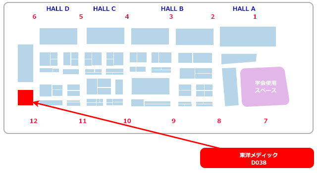展示ホールDの入口すぐ,お立ち寄りいただきやすいロケーションにて皆様のご来場をお待ち申し上げております。