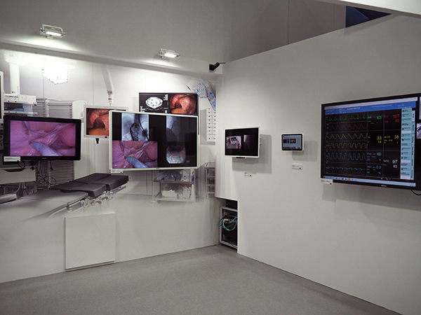 サージカルディスプレイソリューションのコーナーでは,非圧縮無遅延4K外科画像伝送ソリューション“Nexxis 4K”による画像伝送環境を構成,展示した。“Nexxis 4K”は,光ファイバーケーブルにより,画像を4K解像度で非圧縮,無遅延の状態で伝送が可能である。カンファレンスルームや講堂,院長室など,院内の画像配信ソリューションとして有用で,多くの医療施設で導入されている。