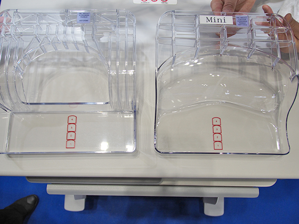 従来の小乳房用圧迫板(左)と「SmartCurve Mini」(右)