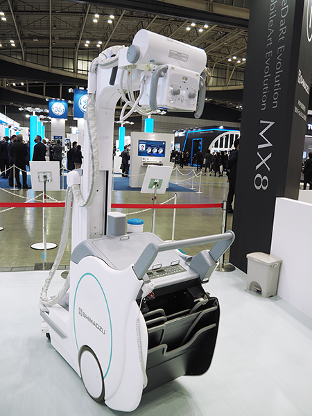 回診用X線撮影装置の新ラインアップ「MobileArt Evolution MX8 Version」。従来のFPD搭載型ではなく既存のFPD使用が可能で,低価格での導入を実現する