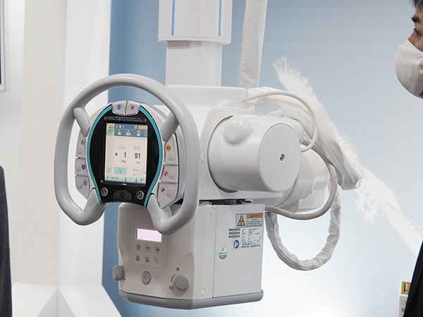 血管撮影システム「Trinias」の新たなラインアップとなる次世代のコンセプトモデルが展示された(2021年度発売予定。W. I. P.)。床置きのCアームは180°のスライド回転が可能であり,横入れコーンビームCT撮影を可能にする。また,“Lean Design”のコンセプトの下,人間中心設計に基づいたデザインでスムーズな操作性を実現するほか,低被ばくを追究する“ALARA Design”,最新の医療環境を維持する“Sustainable Design”を形にしていく。