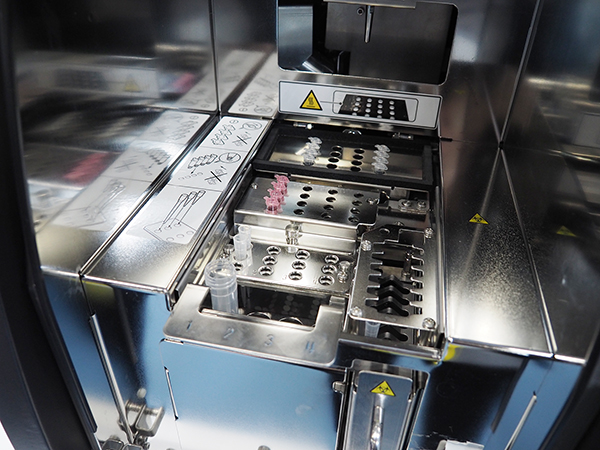 検体をセットするだけで,一度に4検体の検査を全自動で行える