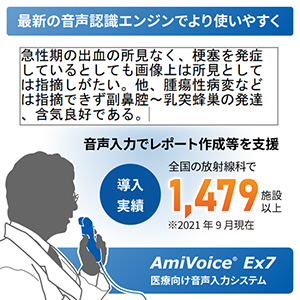 医療従事者のための音声入力システム「AmiVoice」各製品・サービスに,より高い精度の音声認識を実現する「Bi-LSTM」技術を実装しました。認識精度が高まったことで,さらに記録時間を削減し,放射線診断の本来の業務に集中できる環境づくりを実現します。