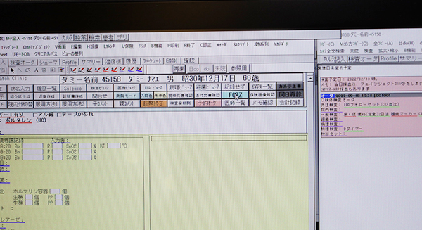 また,クリニック向けの構成では,クリニック向けの電子カルテシステムとして多くの導入実績を持つ油井コンサルティング製電子カルテ「ドクターソフト」と連携した構成の端末を展示した。電子カルテ画面でFORZのボタンをクリックすると,Line-Viewが起動して各種データが簡単に参照できることを紹介した。エクセル・クリエイツでは,ドクターソフト以外にもクリニック向けの電子カルテ各社との多数の連携実績があり,柔軟な対応が可能だ。