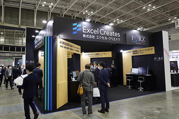 エクセル・クリエイツは,統合型データ管理システム「FORZ(フォルツ)」シリーズのラインアップを中心に展示を行った。FORZは,画像情報システム(PACS)だけでなく,RISや各種レポート,検体検査,健診など,院内で発生するさまざまな情報を統合して,1つのサーバでワンストップに保存,管理して運用できる統合システムである。ブースでは,FORZの運用について,健診施設での読影システム,クリニックでの診療環境,マンモグラフィ向けの読影端末,検体検査システムなどのユースケースに合わせた構成を用意して,中規模医療機関からクリニックまでさまざまな環境で情報の管理が行えることをアピールした。そのほか,将来的なクラウド運用もにらんで開発したWeb版のビューワについて,計測等の機能を強化したことを紹介した。
