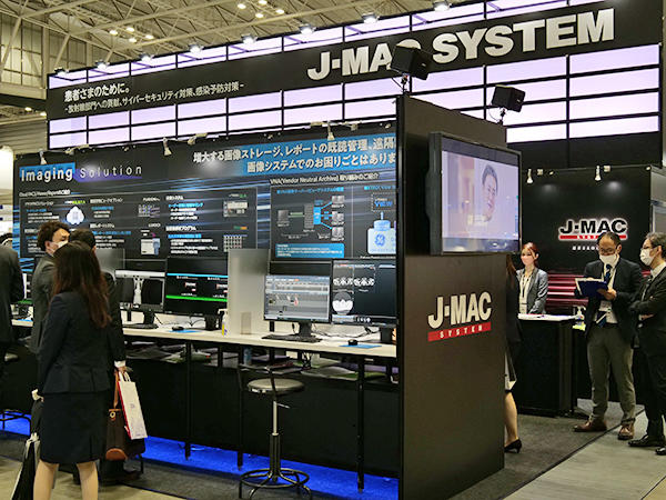 PACSやRIS,ビューワなど放射線部門の検査・診断にかかわるシステムを提供するジェイマックシステム。今回は,「患者さまのために。 ー放射線部門への貢献,サイバーセキュリティ対策,感染予防対策ー」をテーマに掲げ,Imaging Solution,IT Solution,Featured Products,遠隔読影Solutionの4エリアに分けて展示を構成した。3年ぶりにパシフィコ横浜に帰ってきた同社であったが,存在感を見せた。Imaging Solutionのエリアでは,PACSソリューション「XTREK F.E.S.T.A」のビューワ“XTREK VIEW”のオプションで提供されるフュージョンアプリケーション“FUSION Plus”の新機能や,脳画像解析プログラム “PMAneo”をアピールした。IT Solutionとしては,RIS「ACTRIS」と線量管理システム「DoseChecker」との連携による医療放射線の被ばく線量管理・記録の効率化,線量の最適化のための取り組みを提案した。また,Featured Productsでは,医療機関の大きな課題となっているサイバーセキュリティ対策として,「TSOCセキュリティパッケージ」と「WatchManBox」(ハイテックシステム社)を紹介。さらに,感染防止対策として高性能空気清浄機や洗浄可能な防水キーボード,マウスも展示した。