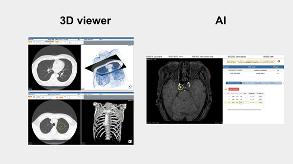 遠隔読影プラットフォーム,病変検出AIアルゴリズムとの連携,地域医療連携,検査画像共,3Dビューワ(プロト版)