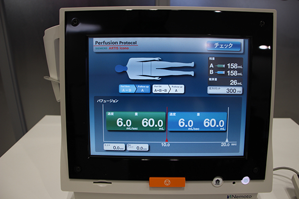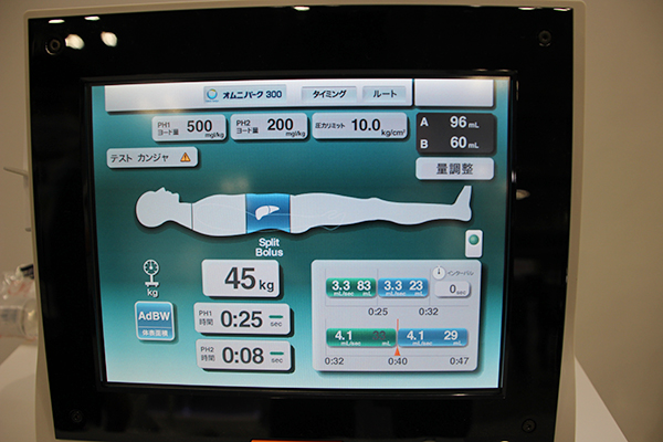 CT用注入器であるDUAL SHOT GX7は,シリンジセッティングが容易で迅速・安全な造影検査に貢献するとして高く評価されている。部位に応じた注入プロトコールを事前に登録しておけば,検査時には検査部位の選択と患者の体重入力を行うだけで,最適な注入量と注入速度が自動計算される。また,コンソールのインターフェイスは,操作性に優れた画面デザインとなっており,ヒトを模したアイコンなどを用いて多数の注入プロトコールから必要なものを直感的に呼び出すことができる。