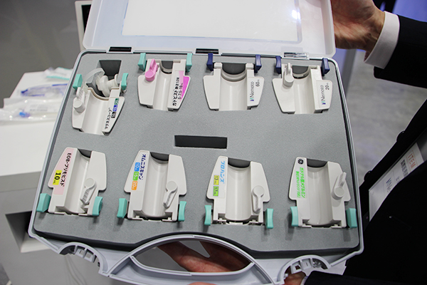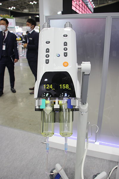安全・安心・確実な造影検査の実施に貢献する造影剤注入器や技術を提供する根本杏林堂は,「臨床画像を支える,検査の安全を支える」をテーマに掲げて展示を行った。展示の中心となったCT用注入器「DUAL SHOT GX7」,MRI用注入器「SONIC SHOT 7」,アンギオ用注入器「PRESS DUO elite」の3製品は,すべてデュアルタイプとなっている。コンソールは,いずれの製品も統一されたデザインでシンプルな操作性のユーザーインターフェイスが採用されており,直感的に使用することができる。ブースでは,これらの製品の特長のほか,CTの新しい注入プロトコールなどが紹介された。また,医師の働き方改革に伴い求められているタスク・シフティングに貢献するシステムとして,「CEエビデンスシステム」,「圧力監視モニター」,「造影剤モレ検知サポートシステムLD」(共にオプション)などが紹介された。