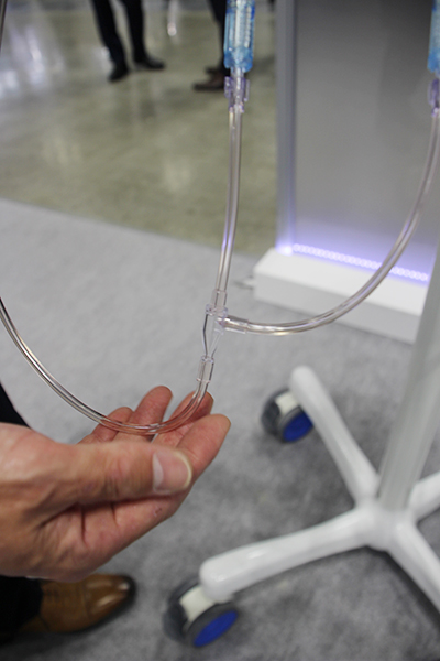アンギオ用注入器のPRESS DUO eliteは,造影剤と生理食塩水の両方を装着可能なデュアルタイプのインジェクタ。コンソール上で希釈割合をコントロールできるため,診療放射線技師が希釈造影剤を作成する手間を削減し,かつ衛生的に検査を行うことができる。希釈割合の表示は,%,倍率,比率での設定が可能で,コンソールの画面表示も非常にわかりやすい。また,希釈造影剤の作成のカギとなる製品として,ミキシングチューブSPIRAL FLOWが紹介された。SPIRAL FLOWは,独自の流路設計によって内部で乱流を作り出す三次元混合を実現しており,造影剤と生理食塩水が希釈ムラなく効率良く混ざり合い,目的とする造影剤濃度を即座に得ることができる。