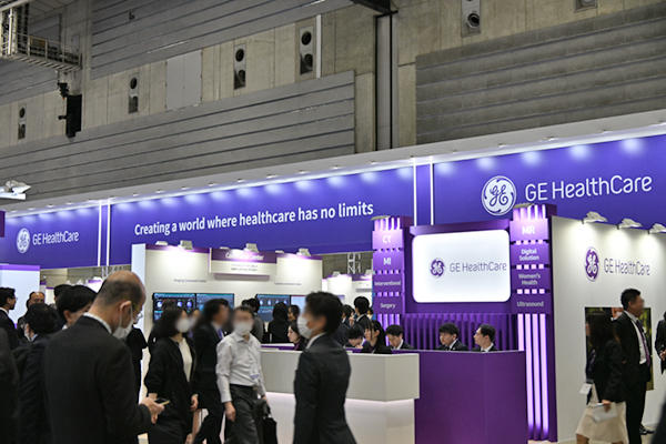 このほかの注目製品・技術としては,MRIのコーナーでワイドボア設計の1.5T「SIGNA Champion」を展示。ガントリの開口径は70cmで,上下方向50cm以上の空間を確保して,被検者の負担を軽減している。また,Molecular Imaging(MI)のコーナーでは,SiPM半導体検出器搭載PET/CT「Omni Legend」を紹介した。超音波診断装置では,「cSound Imageformer」による全視野・全深度フルフォーカスの画像を得られる「LOGIQ Totus」などが関心を集めた。