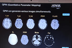 日立のMRIでは大きなトピックスとして,「QPM(Quantitative Parameter Mapping)」と「QSM(Quantitative Susceptibility Mapping)」(共にW.I.P.)が,映像とナレーションで最新の定量化技術を紹介するQuantitative Technology Theater(定量技術シアター)にて展示された。