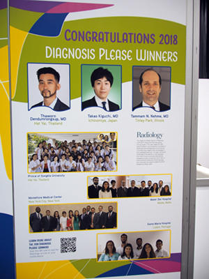 “Radiology”に掲載される画像診断コンテスト“Diagnosis Please”(年12回)で,最多正解数を獲得した人が表彰されるDiagnosis Please Awardの受賞者が会場のパネルで告知された。毎年のように日本人が受賞するこのAwardは,今年も昨年に続き,木口貴雄氏が受賞。木口氏は今回で,5年連続の受賞を記録した。