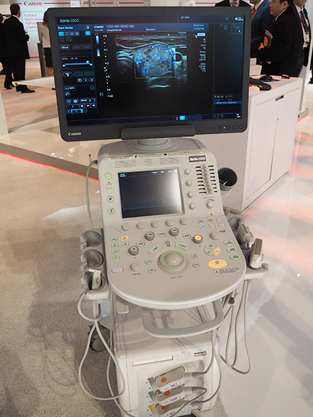 2018年のITEMでお披露目されたAplio aシリーズ(a550,a450)は,Aplio iシリーズの高性能な画像描出技術を継承しながら,軽量,コンパクトで操作しやすいデザインを取り入れている。Aplio 500,400,300のプローブやAplio iシリーズの多くのプローブと互換性があるため,既存の環境を生かしながらより高画質の検査を提供することも可能になる。また,こちらも国内ではITEM2018で発表された,Xario 200GもRSNAでは初展示となった。Xario 200Gは,Xarioシリーズのコンパクトで機動性の高い装置設計を引き継ぎ,21.5インチのワイド画面液晶モニタを搭載。さらに,最大8時間のバッテリー駆動を可能にして,充電しなくてもほぼ1日検査が可能になる。機動性では,スマートスタンバイモードによって,モニタを倒すだけで2秒でスリープ状態に,モニタを起こせば2秒で復帰する。超音波検査の広がりで,院内のさまざまな場所で求められる検査に柔軟かつ迅速な対応を可能にした。