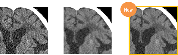逐次近似画像処理“IPV”は,自然な質感を保ったまま,最大90%の画像ノイズ低減や,最大83%の被ばく低減などを可能にし,低被ばくと高画質を高いレベルで両立できる画像処理法である。今回,適応領域が従来の腹部だけでなく,頭部や胸部も含めた全身へと広がった。高画質化についてはさらに,金属アーチファクト低減技術“HiMAR”が進化し,“HiMAR Plus”が追加された。HiMAR Plusは,rawデータとイメージデータの両方で繰り返し再構成を行うことで,より強いアーチファクトを抑制することができる。画像処理の強度は,standardとstrongの2段階が用意されている。アーチファクトを除去しやすい腰椎などには高速に処理できる従来のHiMARを,大腿や膝など大きな金属が入っている部分にはHiMAR Plusを使用するなど,撮影画像を確認して必要に応じた処理が可能になる。