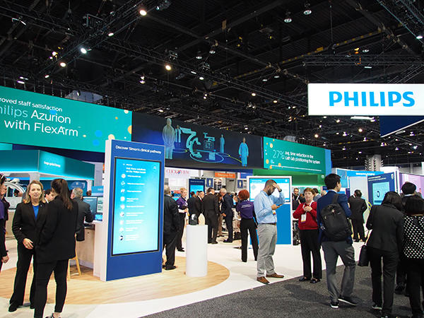 Philips(フィリップス)は,前回のRSNA 2018に続き,展示テーマに“No bounds. Better healthcare.”(境界を取り去り,よりよい医療を)を掲げて来場者を迎えた。テーマに基づき,“value based care”を中心にフィリップスがめざしているものが「患者アウトカムの向上」「患者体験の向上」「医療従事者の満足度向上」「ケアコスト低減」の4つの価値である。今回も多数のモダリティやソリューションを出展しているが,それぞれの展示では4つの価値を踏まえた紹介が行われている。