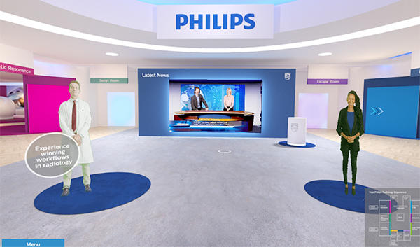Philips(フィリップス)は,“There’s always a way to make life better”をメッセージに掲げ,フィリップスがめざす「患者のより良い健康の実現」「患者・家族の満足度向上」「医療従事者の環境の改善」「不要な医療コストの削減と収益改善」という4つの価値を実現するためのソリューションを紹介した。ガイドによるプレゼンテーションや映像でモダリティやサービスごとにソリューションを紹介したほか,最新情報をニュース番組さながらの映像でトピックスを紹介するなど,凝った演出で訪問者を引きつけた。