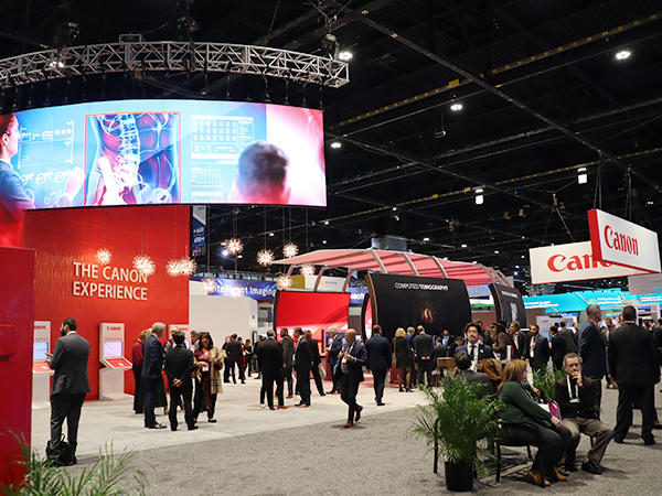 キヤノンメディカルシステムズは,コロナ禍以降,RSNA展示はバーチャルのみとしていたが,今回,実地での展示を復活。テーマに“Meaningful innovation.”(意味のあるイノベーション)を掲げ,いち早く開発・実装に取り組んできた人工知能(AI)技術を,いかに臨床で活用してもらい,価値を提供していくかをブース全体で紹介した。COVID-19の完全な収束がいまだ見えぬ中,感染対策にも配慮したニューノーマル時代の新たな展示として,一部を除いて実機のない展示にチャレンジしている。