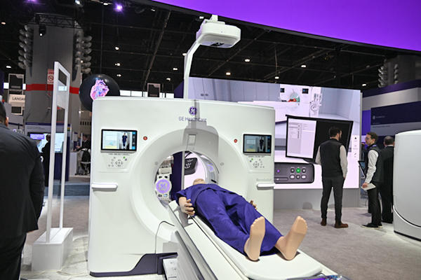 GE Healthcare(GEヘルスケア)では今回のRSNAで,ハイエンド装置の「Revolution Apex Elite」と「Revolution Ascend」の2機種を展示した。2台いずれもディープラーニング(DL)技術を用いてポジショニングなどを自動化し,検査のワークフローの効率性を向上させる「Deep Learning カメラユニット」をセットした状態で紹介された。ほかのモダリティ同様このような人工知能(AI)技術の実装が進んでおり,今回のCTコーナーでは,さらに画像再構成処理でのAI技術の活用が拡大していることをアピールした。