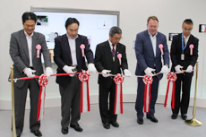 当日は,GEヘルスケアのプレジデント兼CEOであるジョン・ディニーン氏,GEヘルスケア・ジャパンの代表取締役社長兼CEOの川上潤氏をはじめ,日野市の企画本部長の荻原弘次氏らが参列してセレモニーが行われた。ディニーン氏は,日本のOptima CT660などIJFG(In Japan for Global)の製品開発を評価し,次の30年に向けて成功への道をともに切り開いていきたいと述べた。川上氏は,「エジソンの精神には,今世界に必要なものを作ることと,これからのためにイノベーションするという2つのコンセプトがあるが,今回の“Edison Spirit”でも,タッチパネルなど最新のテクノロジーと創業以来の企業理念を刻んだ屋久杉と,新旧のスピリッツが共鳴して次世代へ向けたメッセージを発信する空間となった。今後もこの日野本社・工場を拠点としてヘルシーマジネーションやSilver to Gold戦略に取り組んで行きたい」と語った。また,荻原氏は馬場弘融日野市長のメッセージを代読し,「日野市は来年市制50周年を迎えるが,今後もGE社との協同により市民の健康増進と地域医療の充実に向けて前進していきたい」と述べた。最後に,ディニーン氏,川上氏,荻原氏のほか,GEヘルスケア・ジャパン代表取締役会長の熊谷昭彦氏,Edison Spiritという愛称の命名者(社内公募)である上山匡氏によるテープカットが行われた。