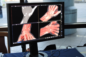 研究会の最後には,次回の当番理事である静岡がんセンターの中屋良宏氏が閉会の挨拶を行った。次回は,2014年1月もしくは2月の開催を予定しており,会場は名古屋市内で調整中とのことである。このほか,会場の外では,協賛企業である(株)AZEやコニカミノルタヘルスケア(株),ザイオソフト(株)のほか,(株)根本杏林堂などが展示を行った。
