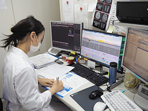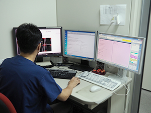 このようにモダリティだけでなく,検査環境にも配慮した設計により,CTは1日15〜20件,MRIは2台体制で,1時間1検査枠として1日15件程度検査している。両モダリティともにスループットが良く,迅速に検査を行えているため,オーダ後CTは即日,MRIは3日以内に検査を実施できている。検査後は,ザイオソフト社製ネットワーク型ワークステーション「Ziostation2」による解析処理を行い,担当技師が所見をつける。この結果を基に,4階の診察室にいる寺島院長ら医師が診断,説明を行う。また,CTと心エコー両検査をする際は,それぞれの担当技師が連携し,所見を参照し合うことで,質の高い検査を施行できている。