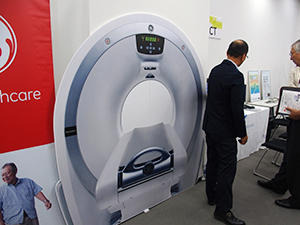 GEヘルスケア・ジャパン(株)と島津メディカルシステムズ(株)は2016年8月4日(木),5日(金)の2日間,医療機器販売会社を対象とした合同展示会「2016年夏の医療機器展示祭り」を開催した。この展示会は,両社が協業して診療所や中小規模病院などのプライマリケア市場向けに,CTなどの画像診断装置や電子カルテシステムなどを提供していくための初の試みとして行われた。現在,GEヘルスケア・ジャパンは,CTや超音波診断装置,全身X線骨密度測定装置などを医療機器販売会社を通じて,プライマリケア市場向けに展開している。一方,島津メディカルシステムズは,X線撮影装置や診療所向け電子カルテシステムなどを販売している。展示会を通じて,両社の幅広いラインナップを医療機器販売会社にPRするのがねらいだ。